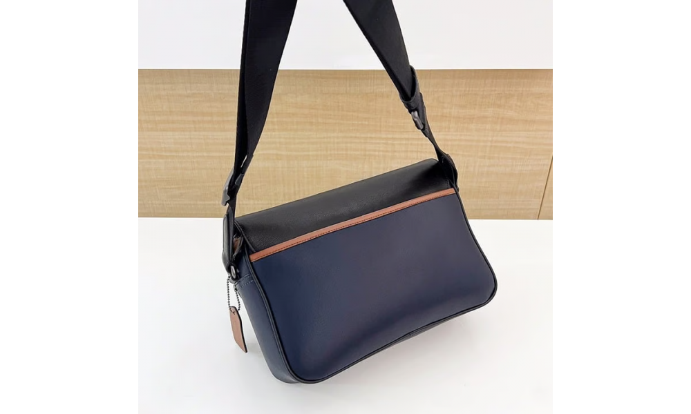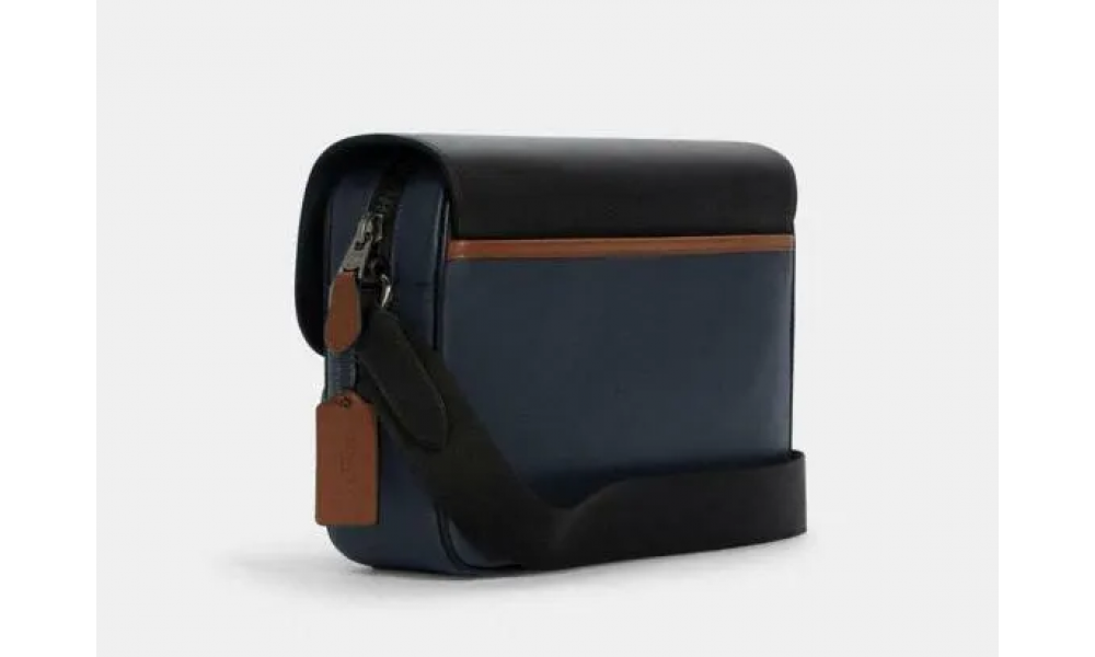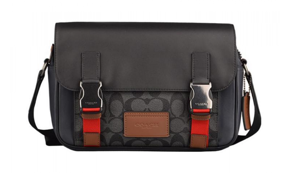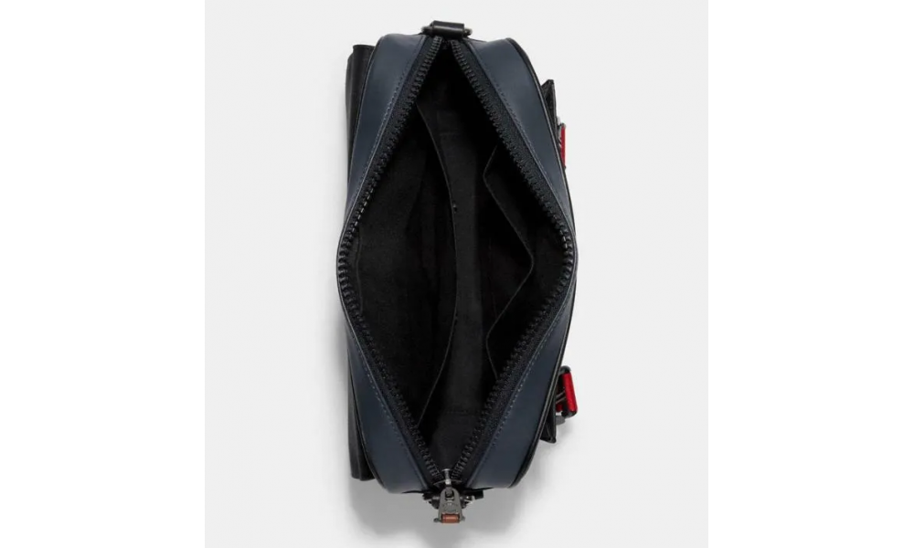Сумка Coach Track Crossbody черная с красным прямоугольная